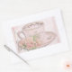 Personalisieren Sie diesen Aufkleber für ein besonderes Muttertagsgeschenk. Mama wird diese A Cup of Tea for Mother's Day Pink Aufkleber, die mit einer farbenfrohen rosa Tasse Tee und Untertasse vor einem blassrosa Hintergrund mit rosa Rosen auf der Untertasse.
