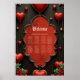 Eine Touch der Gotik, des Herzens und der ewigen Verbindung. Das Design zeichnet sich durch ein dunkles, elegantes Hintergrunddesign aus, das sofort Aufmerksamkeit zeichne. Mehrere leuchtend rote Herzen, von denen einige scheinbar in Tartrops verwandelt wurden, hängen von zarten, dünnen Saiten und verleihen der Karte eine spielerische und romantische Touch. Das Zentrum wird von einem kunstvoll gestalteten, roten Rahmen dominiert, der mit einer zarten Rose, die Liebe und Leidenschaft symbolisiert, dekoriert ist. Am unteren Ende der Karte schmücken üppige rote Rosen mit üppiger Vegetation das romantische Ambiente.