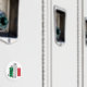 Italienische Flagge, zeichnend Linie des schiefen Turms und Wort "Italia"