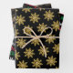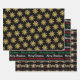 Alle drei Designs sind Set auf einem schwarzen Hintergrund, sodass Ihre verpackten Geschenke "Eine Touch der Klasse". Das erste Muster besteht aus einer goldfarbenen Schneeflocke. Das nächste Blatt hat ein Muster aus den Worten Frohe Weihnachten, in weiß, rot und grün. Und das letzte Design ist ein Spiegelmuster von Ornamenten.