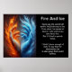 Eine Verschmelzung von Feuer und Eis zeigt sich in dieser künstlerischen Darstellung zweier Hände, die ausgehen. Die eisblaue Hand, die mit Frost und Eiskeln wirbelt, symbolisiert Kälte und Klarheit. Die feurige orange und rote Hand, die mit Flammen und Rauch wirbelt, symbolisiert Wärme und Leidenschaft. Der Hintergrund ist ein Farbverlauf aus dunklen, rauchigen Tönen, die den Kontrast hervorheben. Lichteffekte unterstreichen das elementare Thema. "Feuer und Eis" steht in der fett- und modernen Typografie ganz oben.