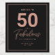Einfaches Black & Roes Gold "50 and Fabulous" Geburtstagsschild mit eleganter Typografie. Passen Sie es mit Alter, Name, Party und Veranstaltungsort einfach an. Perfekt für Geburtstagsgeschenke oder Gastgeschenk.