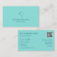 Einfach Aquamarin mit Monogram und QR Code modern Visitenkarte