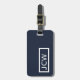Elegante, anpassbare blaue Gepäckmarke mit weißem Rahmen und feinem Monogramm.