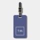 Elegante, anpassbare blaue Gepäckmarke mit weißem Rahmen und feinem Monogramm.