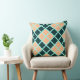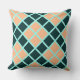 Pfirsichfarbige Quadrate und dunkelgrüne Quadrate, die mit einem sehr hellen, zykfarbenen Design versehen sind