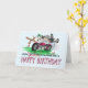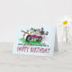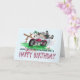 Motorradfahrer, die in einen Zaun stürzen und einen glücklichen Geburtstag wünschen.