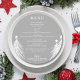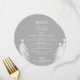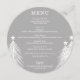 Ein elegantes, silbergraues rundes Dinner-Menü mit weißen Weihnachtsbäumen bietet Ihre Menüdetails in schicker Schrift. Ideal für ein Weihnachtsfest oder ein besonderes Party mit einem Dinner.