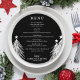 Ein elegantes, schwarzes, rundes Dinner-Menü mit weißen Weihnachtsbäumen bietet Ihre Menüdetails in schicken Schriften. Ideal für ein Weihnachtsfest oder ein besonderes Party mit einem Dinner.