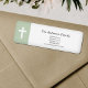 Ein einfacher und eleganter Rücksendeaufkleber mit einem grünen Hintergrund auf dem links mit einem weißen Kreuz. Eine sehr nüchterne Art zu kommunizieren für einen Pastor, eine Kirche, eine Christliche Gemeinschaft oder nur eine Familie.