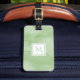 Das hellgrüne, schlichte Marmordesign-Gepäckstück mit einem modernen, weißen quadratischen Abzeichen, das Sie durch die mit Monogramm Aufnahme in das Gepäck personalisieren können. Dies ist Teil der Monogramm-Sammlung Nile Green Subtle Marble.