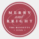 Unsere personalisierten Siegel fügen allen Weihnachtskarten und Einladungen eine elegante und festliche Touch hinzu. Design bietet "Merry and Bright" in einem schicken Mix aus Block- und Kalligraphie-Schriftzeichen in knalligem Weiß auf festlichem Cranberry-Rot-Hintergrund. Personalisieren Sie mit Ihrem Familiennamen und dem Jahr unten.