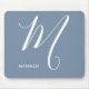 Einfach Mit Monogramm Script Letter M Blue & White Mousepad