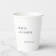 Diese eleganten, schwarz-weißen Hochzeitsbecher oder Brautparty-Papierbecher sind einfach und minimalistisch, aber sehr stilvoll, dank der weißen, modernen handgeschriebenen Schrift und dem sauberen Layout.