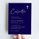 Diese eleganten, geschlechtsneutralen, dunkelblau-weiß-bestätigten Einladungen sind einfach und minimalistisch, aber aufgrund der modernen handgeschriebenen Schrift und des sauberen Layouts sehr stilvoll. Es gibt auch ein passendes weißes Kreuz.