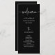 Das elegante, dunkelschwarz-weiße Hochzeitsempfang-Programm ist einfach und minimalistisch, aber sehr stilvoll, dank der modernen, handgeschriebenen Schrift und der sauberen Anordnung. Fügen Sie einfach Ihre Zeremonie und die Namen Ihrer Hochzeitsfeier hinzu.