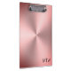 Das rosa gebürstete Metall-Aussehen ist ein Kunstwerk. Die Zwischenablage hat eine radiale Bauweise. Schwarzer Text ist in der unteren Ecke. Sie können den Text so ändern, dass er das richtige Monogramm zeigt.
