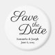 Ein Save the Date einladender Magnet mit einem schönen Kalligrafiestil. Passen Sie den Hintergrund und den schwarzen Schriftart an. Ein mittelrunder Magnet zum Speichern der Daten.