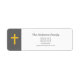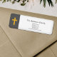 Ein einfacher und eleganter Rücksendeaufkleber mit schwarzem Hintergrund auf dem links mit einem Goldkreuz. Eine sehr nüchterne Art zu kommunizieren für einen Pastor, eine Kirche, eine Christliche Gemeinschaft oder nur eine Familie.