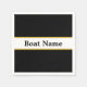 Ein schwarzer Streifen ist oben und unten. In der Mitte ist ein weißer Streifen mit schwarzem Bildschirmtext. Sie können den Text bearbeiten, um den Namen Ihres Bootes oder eine benutzerdefinierte Nachricht anzuzeigen. Die goldenen Streifen der Imitate sind nicht aus Folie.