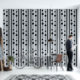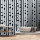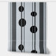 Schwarze Punkte und dunkelgraue vertikale Linien auf hellgrauem Hintergrund in einem einfachen und eleganten Muster-Design