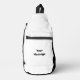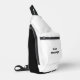 Sie können Ihre eigene Nachricht in schwarzem Text auf diesem weißen Sling Crossbody Sack erstellen.