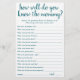 "Wie gut kennst du Mami?" Wer kennt die zukünftige Mutter am besten? Einfache Babydusche oder Gender zeigen das Party mit einem lässigen, handgeschriebenen Drehbuch. Das klassische Design beinhaltet ein modernes, handhabbares Offerttipografie-Overlay. Für andere Farben oder passende Produkte, besuchen Sie bitte den JustFharryn Zazzle Store, oder kontaktieren Sie den Designer, c/o Fharryn@yahoo.com Alle Rechte vorbehalten. #bohochic #zazzlemade"