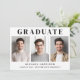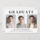Einfache Ankündigung des Abschlusses mit 3 Fotos in der Mitte, "Graduate" in eleganter Typografie und den Namen, Schule und Klasse Jahr in der modernen Typografie.