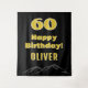 Einfache 60. Happy Geburtstag Party Hintergrund. Ein schlichtes und modernes Design mit kühnen und lebhaften, gelben Schriftart auf schwarzem Hintergrund und einer abstrakten Bergform auf dem Grund. Nutzen Sie diese Tapisserie als Kulisse für die 60. Geburtstagsfeier für eine Person, die Bergwanderungen Lieben. Personalisieren Sie es mit Ihrem Namen und Alter.