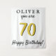 Einfaches 70. Happy Birthday Party Backdrop. Nutzen Sie die Tapisserie als Hintergrund für die 70. Geburtstagsfeier. Personalisieren Sie es mit Ihrem Namen und Alter und jedem Text.