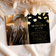 Moderne Einladungen zur Graduiertenparty mit einem Foto des Absolventen, fallender realer Goldfolienmütze und einer eleganten Textvorlage, die leicht zu personalisieren ist.