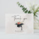 Eine saubere und moderne Dankeskarte für die Abschlussfeier. Die Vorderseite zeigt einen eleganten, abstrakten Aquarellhintergrund. Sanfte, hellgraue und beige Töne verleihen der Karte eine sanfte Note und schaffen eine polierte und stilvolle Karte, um Ihre Wertschätzung dafür zu zeigen, dass Sie diesen besonderen Meilenstein mitfeiern. Eine schöne Aquarellillustration einer Studentinnenmütze mit schwarzer Quaste, hübschen Blumen und grünen Blättern.