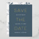 Modernes Save the Date Design in schick rauchig aquamarin-blau mit Sans Serif und kursiv Schrift in knusprig weiß, mit Ihren Namen, Hochzeitstag und Ort verstreut mit "Save the Date" in Gold. Personalisieren Sie Ihre Einladung und/oder Hochzeitswebsite auf der Rückseite. Ein elegantes Save the Date Design für moderne Paare mit minimalistischer Ästhetik.