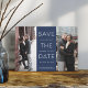 Moderne Save the Date Fotokarte mit Sans Serif und kursivem Schriftsatz in knusprig weiß. Ihre Namen, Ihr Hochzeitstermin und Ihr Standort sind mit "Save the Date" verstreut. Der Text ist auf einem marineblauen Hintergrund zentriert, der zwei Ihrer beliebtesten vertikalen oder portraitorientierten Verlobung-Fotos zerteilt. Personalisieren Sie Ihre Einladung und/oder Hochzeitswebsite ganz unten. Eine schicke Save the Date Wahl für moderne Paare mit minimalistischer Ästhetik.