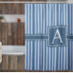 Einfache Asst-Größen Monogramm Blau und Weiß Strei Duschvorhang