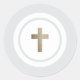 Ein moderner, religiöser Aufkleber mit einem einfachen goldenen Kreuz, das in weißen und weichen grauen Kreisen untergebracht ist. Ideal für Geschenkschachteln, Umschläge oder Geschenke. Koordiniert mit Gegenständen aus der klassischen Taufkollektion Stripe von Stacey Meacham.