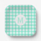 Einfache Basic Mint Green Gingham Monogram Pappteller