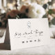 Diese elegante Hochzeitsfeier-Platzkarte vereint Einfachheit und Modernität, die Ihren Tag mit einer raffinierten Touch bereichern. Auf der Karte befinden sich die Initialen des Paares, die schön gerahmt in einem minimalistischen Kapselgewölbe, einem subtilen und dennoch auffälligen Designelement, das das zeitgenössische Flair der Karte noch verstärkt. Die in gefaltetem Design gefertigte Karte bietet ausreichend Platz, um persönlich Etiketten mit den Namen Ihrer Gäste zu schreiben oder anzubringen, um so eine personalisierte Touch zu gewährleisten. Unter der Tischnummer sind die Symbole für die verschiedenen Mahlzeiten gut definiert. Diese Ikonen sind nicht nur optisch ansprechend, sondern auch praktisch, sodass die Gäste ihre ausgewählte Mahlzeit leicht umrunden können, wodurch das kulinarische Erlebnis gestrafft wird. Die Kombination aus sauberen Linien und einer modernen Ästhetik macht diese Karte zu einer idealen Wahl für Paare, die ein stilvolles und dennoch funktionales Element für ihre Hochzeitstisch suchen. Das Design harmoniert harmonisch mit verschiedenen Hochzeitsthemen und bietet eine bequeme und elegante Art, die Speisen zu verwalten.