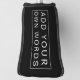Einfache schwarz-weiße Putter Kopfbedeckung für Sie, um mit Ihren eigenen Worten, wie z.B. Ihrem Firmennamen, dem Namen des Golfers, einem Slogline oder Ihrem Golfclub, zu individualisieren.