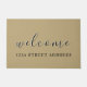 Herzlich willkommen auf Ihrer Zuhause mit stilvoller Eleganz. Dieses elegante Hotel empfängt Sie mit einer stilvollen Willkommensbotschaft und einer Straßenadresse in einem modernen, schwarzen Skript auf einem hellen Hintergrund. Personalisieren Sie Ihre individuelle Nachricht, Adresse, Familienname oder festgestelltes Datum, oder verwenden Sie die Schaltfläche "Diesen Designer kontaktieren", um Hilfe zu erhalten. Erstellen Sie Ihre eigene personalisierte Türmatte mit den angegebenen Feldern. Sie können sich weiter anpassen, indem Sie "anpassen" auswählen und in den Bereich "Ebenen" navigieren, um die Bilder anzuzeigen und die Hintergrundfarbe oder andere Designelemente zu ändern, um Ihren Geschmack Anzug, oder indem Sie die Schaltfläche "Kontakt mit dem Designer" verwenden, um Hilfe zu erhalten. Herzlich willkommen auf Ihrem Zuhause im Stil, oder geben Sie als perfektes Hochzeitsgeschenk oder Hauswärmeschenk für das stilvolle Paar.