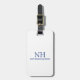 Modernes Gepäckanhänger mit schlichtem und minimalem Blau-Weiß-Design mit dem Monogramm in einem kühlen Schriftart und dem Namen auf der Vorderseite. Auf der Rückseite finden Sie Ihre Kontaktdaten.