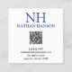 Moderne QR Code Visitenkarten mit einem einfachen und minimalen Blau-Weiß-Design mit Ihrem Monogramm in einem kühlen Schriftart und Ihrem Namen oben. Hier finden Sie Ihre Kontaktdaten.