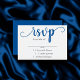 Moderne Kobaltprinzessin Blau und Weiß blühe Kalligraphie-Dusche, Party oder Empfang-Antwortkarte mit einem lustigen, lässigen, handgeschriebenen Drehbuch. Das klassische Design beinhaltet ein modernes, handhabbares Offerttipografie-Overlay. Der hübsche Schriftart mit einer individuell anpassbaren Hintergrundfarbe macht es einfach, sich jedem Thema anzupassen. Für andere Farben oder passende Produkte, besuchen Sie bitte den JustFharryn Zazzle Store, oder kontaktieren Sie den Designer, c/o fharryn@yahoo.com Alle Rechte vorbehalten. #zazzlemade
