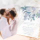 Die wunderschöne, blau gedämpfte, blau zarte Blumenhochzeit lädt mit hübschen, blauen Aquarellfarben Vintage Blume und einem schlicht klassischen Design mit eleganter Kalligraphie-Schrift Typografie ein. Die Rückseite ist voll Foto.