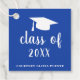 Minimalistischer Abschluss Gunst Tag mit einem einfachen und klassischen Design mit einem Graduiertencap und "Klasse des Jahres" in einer dicken Schrift zusammen mit dem Namen des Absolventen in Weiß auf einem blauen Hintergrund. Die Hintergrundfarbe kann in eine beliebige Farbe geändert werden. Die Rückseite hat Ihre persönliche Danksagung Nachricht. Traditioneller Stil mit modernem Flair, der perfekt für einen Abitur geeignet ist. Diese Gefälligkeitstags sind eine großartige Möglichkeit, Ihren Gastgeschenken eine persönliche Touch hinzuzufügen.