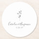 Einfache Blumenschrift White Boho Wedding Custom Runder Pappuntersetzer