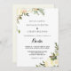 Diese elegante botanische Blumen-Hochzeitseinladung ist perfekt für eine Hochzeit in Urlaubsort. Das brillante Blumendesign besticht durch kunstvolle und strahlende Weiß-, Grün- und Vanille-Pfannkuchen, Rose, inspirierend Schönheit und Glückseligkeit.