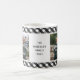 Diese Tasse bietet 2 quadratische Foto mit einem klassischen Büffel-Karo als Hintergrund. Personalisieren Sie diese Sake-Tasse mit Ihrem Familiennamen und Jahr.