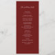 Dieses moderne, minimalistische Hochzeitsprogramm bietet ein einfaches, sauberes Design. Der weiße Text und der bordeauxfarbene Hintergrund passen perfekt zu einer Herbsthochzeit. Dieses Programm bietet Platz für Ihre Trauung Auftrag, ein kurzes persönliches Dankeschön und eine Liste der Hochzeitsfeier auf der Rückseite.