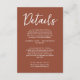 Einfache Burnt Orange Script Boho Wedding Details Begleitkarte